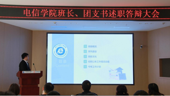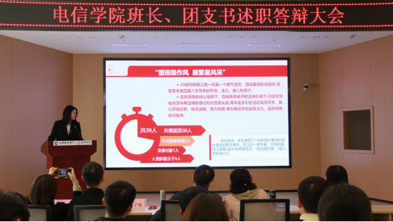班长、团支书述职答辩是电信公司进一步加强班团一体化、员工基层组织建设和员工骨干培养的重要举措,增强了班集体凝聚力和集体荣誉感,发挥优秀班集体的模范作用。此次述职答辩大会也为班团干部提供了一个展示自我的平台,各班同学相互分享、相互学习,通过整理班级问题,延伸发展思路,总结工作概况,为未来班级规划打下夯实的基础,真正做到“任其职,谋其事”,更好地为同学们服务。
