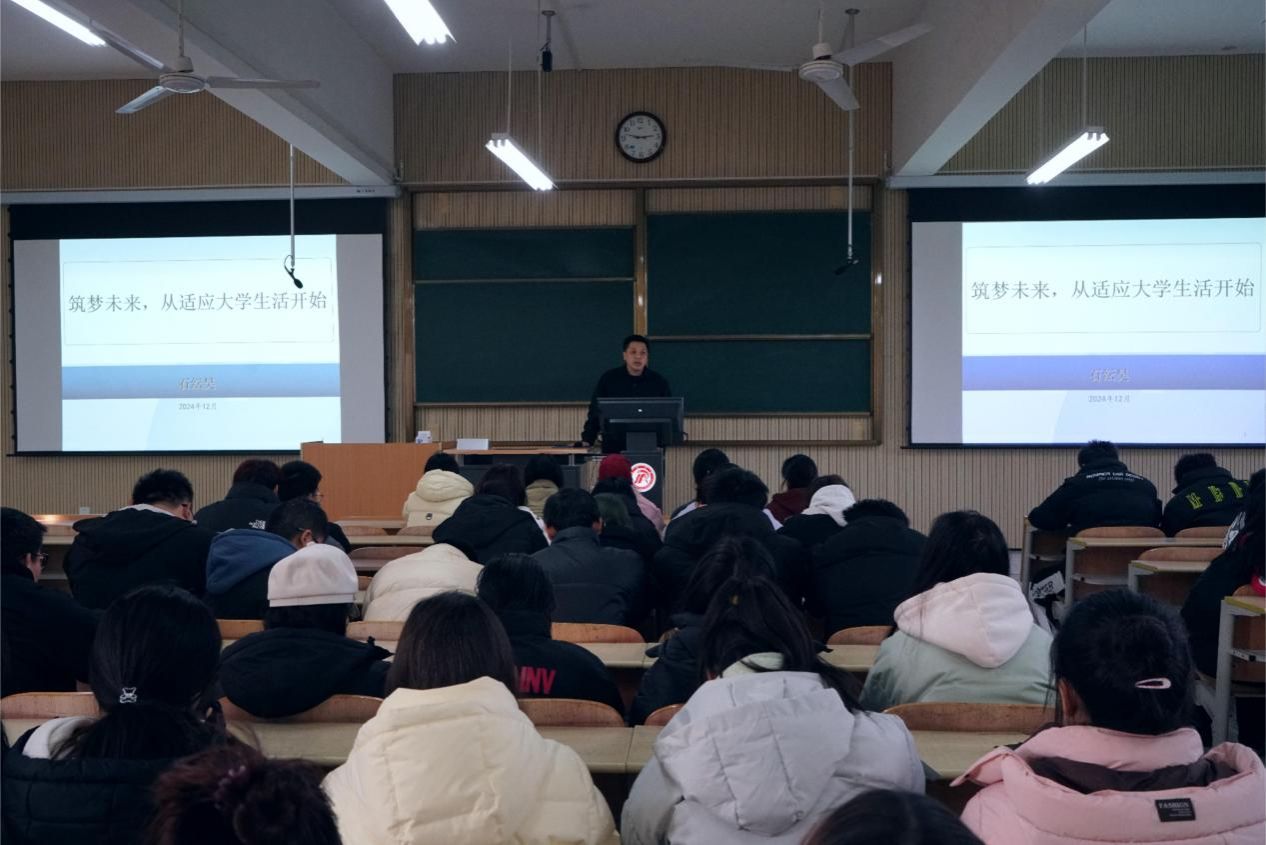 为引导2024级新生树立正确的世界观、人生观、价值观,尽快适应老员工活,早日做好自己的职业生涯规划,12月18日下午,365英国上市公司员工(就业)工作办公室主任石纭昊给全体2024级新生做“筑梦未来,从适应老员工活开始”入学教育专题讲座。
