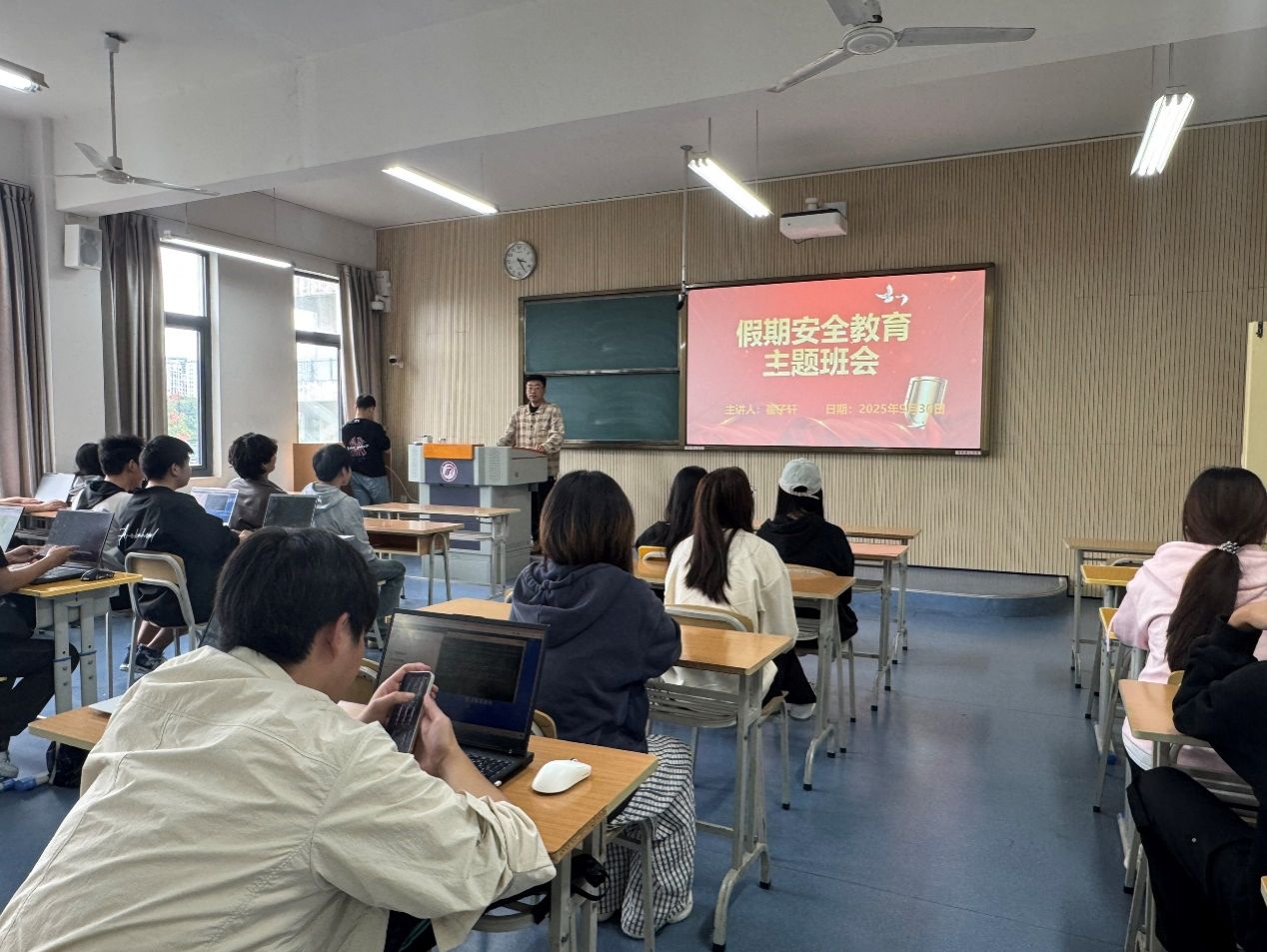 此外,各班结合当前社会环境与员工群体特征,补充讲解防诈骗、防溺水、饮食安全及网络安全等内容。辅导员们结合近期高发的“假期兼职诈骗”、“旅游预订诈骗”等真实案例,详细拆解了诈骗分子的常用手段,告诫员工切勿轻信陌生链接与“高额回报”类信息,遇到可疑情况要及时与家人、老师沟通或第一时间拨打报警电话。针对部分员工计划前往水边游玩的情况,明确强调“远离危险水域”,严禁私自下水游泳或在水边嬉戏。在饮食与网络安全方面,提醒员工注意饮食卫生,避免食用来源不明、不洁的食物;同时规范网络言行,不传播不实信息,不参与网络不良活动,共同维护良好的网络环境。