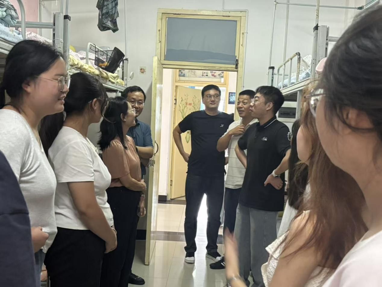 走访过程中,老师们与新生促膝谈心,不仅逐一询问大家的姓名、家乡、兴趣爱好,还细致了解新生的住宿体验、生活需求及入学后的适应状态;对同学们提出的校园生活适应、学业规划方向等疑问,老师们也逐一耐心解答。此外,老师们叮嘱新生,要尽快熟悉校园环境、主动融入集体生活,若遇到困难时及时向老师或公司求助。