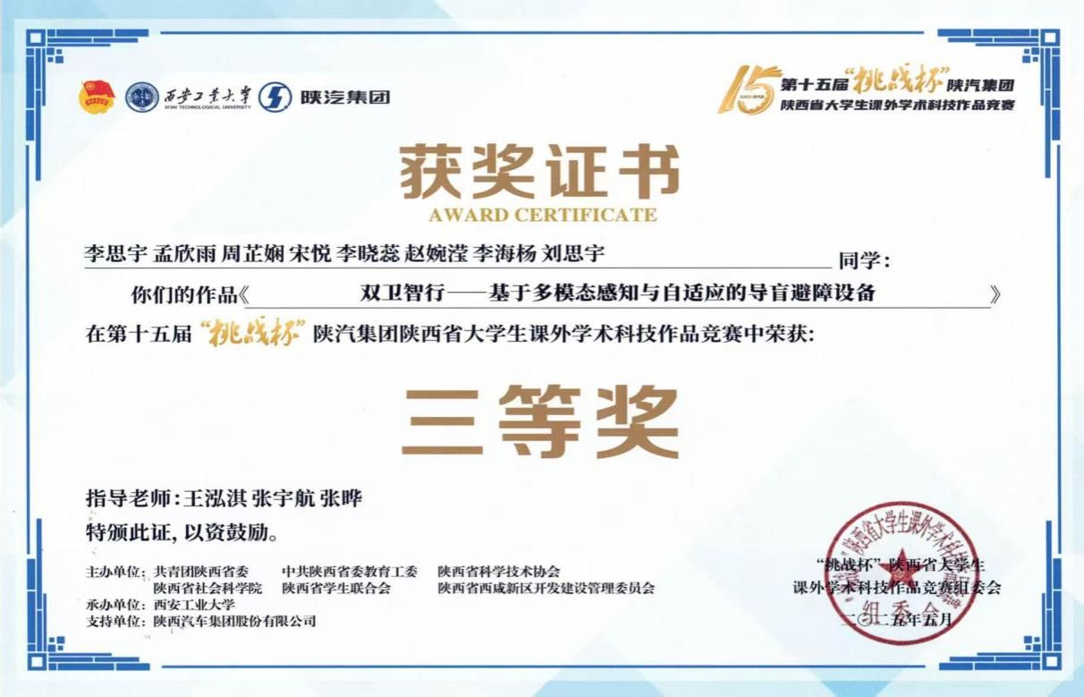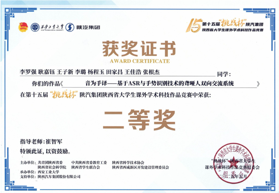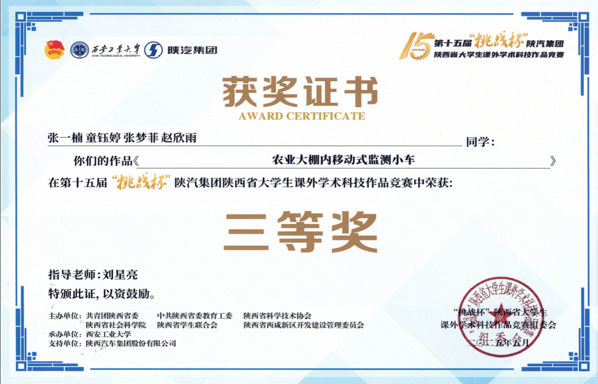 近日,由团省委、省委教育工委、省科协、省社科院、省学联与省西咸新区管委会联合主办、西安工业大学承办的第十五届“挑战杯”陕汽集团陕西省老员工课外学术科技作品竞赛落下帷幕。公司学子在竞赛中表现优异,取得二等奖1项、三等奖2项,展现了深厚的专业功底与卓越的创新实践能力。