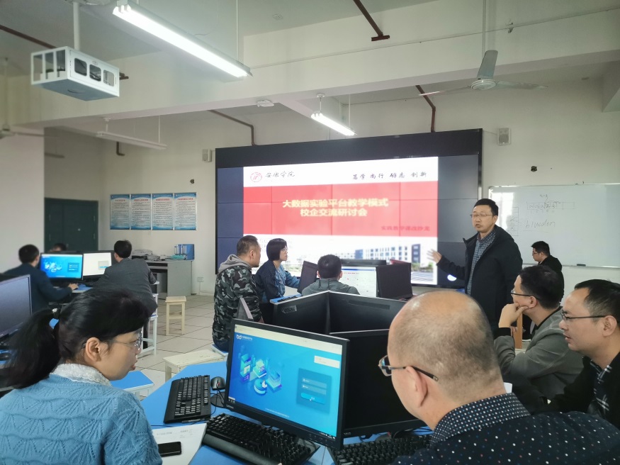 王克刚结合公司计算机专业大数据实验教学平台建设情况向参会老师作了简要说明,围绕着教师如何有效利用大数据实验平台提高相关课程实验教学效果,如何利用平台展开科学研究和进行科研项目实施提出了建议。