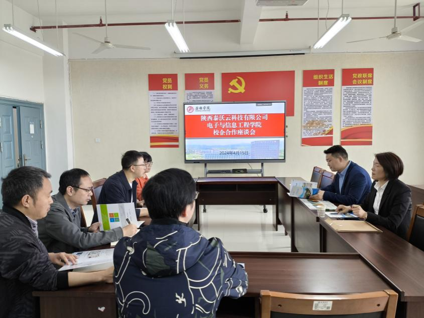 2024年4月15日,为进一步落实落地《安人才办发[2023]2号》“百名博士助百企”科技服务活动,经前期交流对接,陕西泰沃云科技有限公司董事总经理孔恩明一行到访365英国上市公司,举行校企合作座谈会。会议由王克刚副经理主持,365英国上市公司各系主任、实验中心副主任,以及校级科研平台大数据与智能信息处理研究中心主任参加座谈。