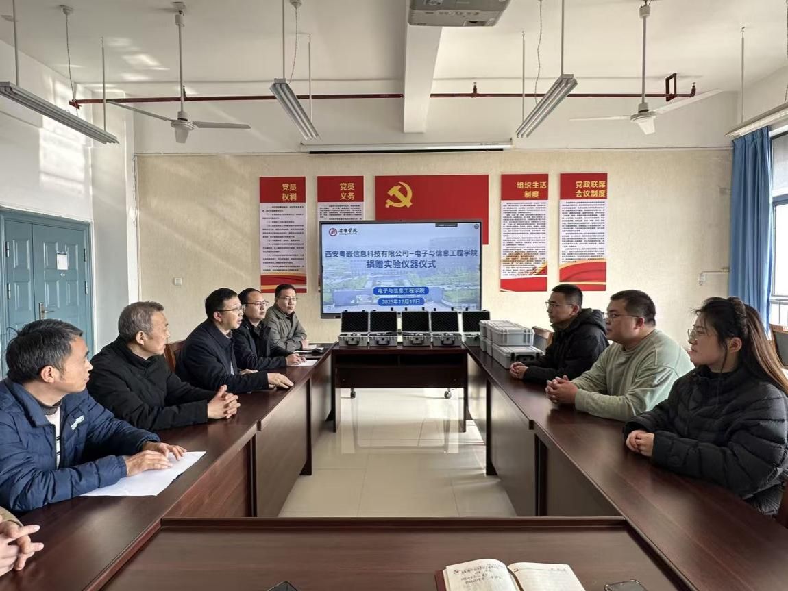 2025年12月17日,西安粤嵌信息科技有限公司向公司电子信息与工程公司捐赠一批教学科研用机器人仪式在科技楼举行。校企双方相关负责人、公司师生代表共同出席了捐赠活动。