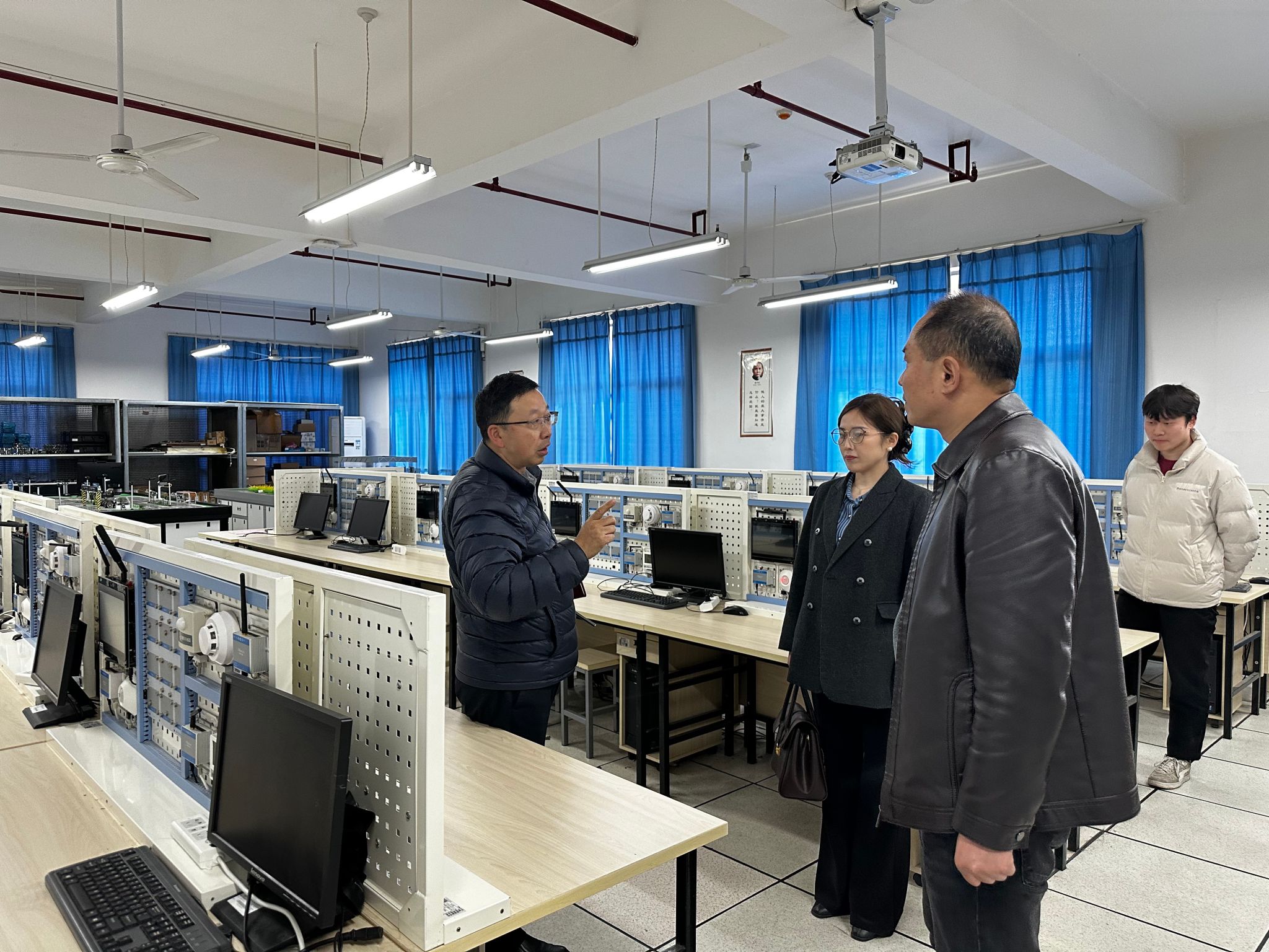 会前,在经理王克刚、副经理丁礼磊陪同下,企业一行实地参观了电信公司物联网实验室、电子工艺实训室、电子综合创新实验室和智慧算力平台等专业实验室与科研平台。参观过程中,院方详细介绍了实验室建设、设备配置、科研方向、员工实训及成果转化等情况。