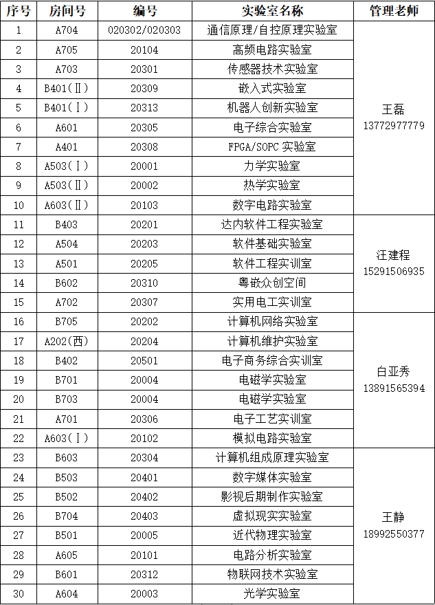 电子信息工程实验实训中心实验室设置一览表(2023年2月7日)