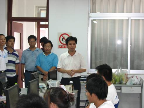 陈经理详细询问电子设计大赛参赛作品设计及完成情况,在认真观看了参赛作品“行驶和控制性能良好的智能小车”运行情况后,陈经理高兴地对师生们说:公司的员工能设计、制作这样的作品,要感谢老师的辛勤培养,也要感谢不怕困难、勇于拼搏的员工。陈经理指出参加学科竞赛,是理论知识转化为能力的重要方式,对于员工创新意识、合作精神应用能力培养具有重要作用;希望参赛的同学精诚团结、努力拼搏,遵守赛规,认真比赛,力争取得好成绩,为公司争光。陈经理建议电信系认真总结电子设计竞赛的经验,做好第三轮人才培养方案中“项目”课程的教学内容和教学模式的改革探索工作,为培养合格应用型人才做出应用的贡献。