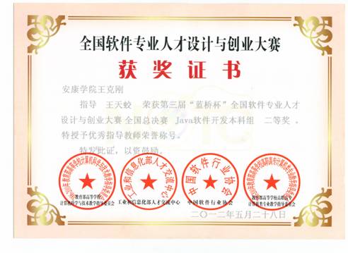 第三届“蓝桥杯”全国软件专业人才设计大赛总决赛成绩于5月27日揭晓,电信系参赛员工获得全国二、三等奖各一项,获陕西赛区奖项23项。