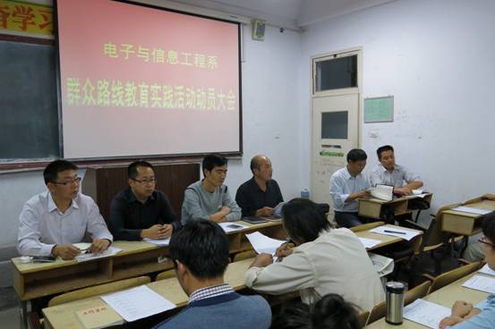 2013年9月28日晚,电子与信息工程系在江南校区1214教室召开“群众路线教育实践活动”动员大会。公司“群众路线教育实践活动”督导屈险峰主任、数学系教师刘铁,系领导及全体教职工参加会议。会议由系总支书记李红兵主持。