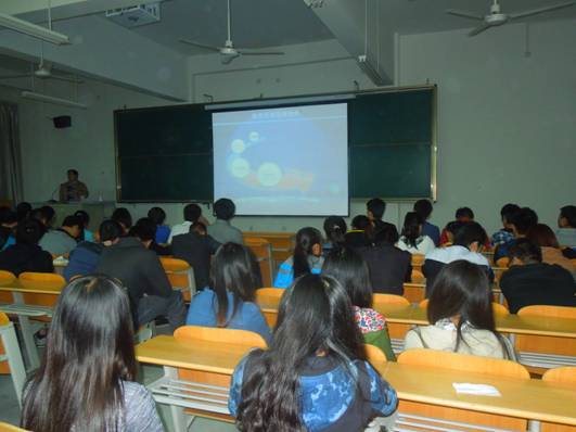 2014年10月23日晚,电子与信息工程系在1304室举办IT微讲堂----软件行业发展趋势及未来人才需求的讲座,主讲嘉宾为深蓝软件研发部总经理兼技术总监南敏庚,12级计算机科学与技术专业全体员工参加报告会。