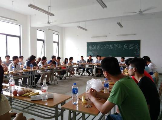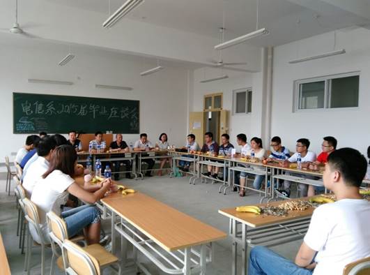 2015年7月1日,电子信息工程系2015届毕业生座谈会在江北校区1318教室召开,出席座谈会的有系党总支书记李红兵、系副主任陈守满、系副主任王庆春以及教师代表,2015届的20多名毕业生参加了此次座谈会。