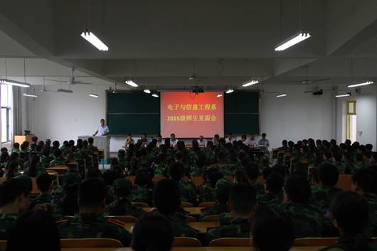 9月14日上午,电子与信息工程系2015级新生师生见面会在1号教学楼1301教室举行。电信系党政班子,两办,教研室主任及2015级新生参加了会议,会议由系党总支书记李红兵主持。