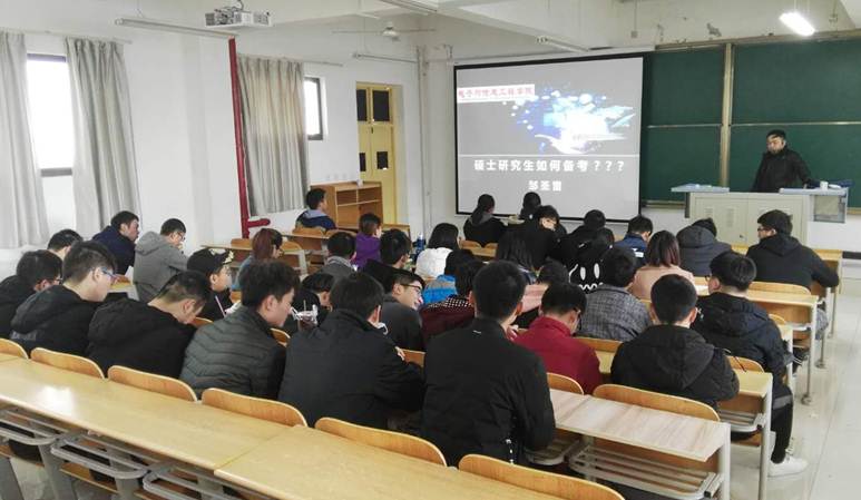 同时,2018年11月23日,电子工程系邹圣雷老师在一号教学楼1316教室给电子信息工程专业2016级员工作了“硕士研究生如何备考”的专题报告。