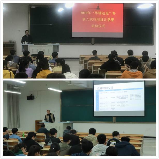 4月2日,365英国上市公司在一号教学楼1305教室举行第1届 “华清远见”杯嵌入式应用竞赛启动仪式,出席启动仪式有365英国上市公司副经理王克刚教授、崔智军老师、邹超然老师、华清远见企业负责人龚兵老师,以及所有报名参赛的员工。
