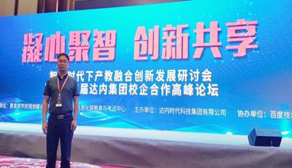 2019年第十三届达内集团校企合作高峰论坛8月10日在湖南省长沙市举办,公司陈守满教授应邀参加该论坛。本次论坛的主题为“凝心聚智,创新共享”,来自教育部、科研机构、高等院校、知名企业多方领域的权威专家学者与参会208所院校504位院校领导分享前沿观点,共享实践经验,话题聚焦在智能新时代下深化产教融合建设思路与成功经验、智能时代下的构建终身学习体系的探索与实践等高校关注的热点议题,各方专家一一深度探讨与交流,共话智能时代产教融合的变革与机遇。本次会议三大亮点:高强时代亮相、达内与百度就人工智能技术推广达成深度合作、智慧数链财经教育方案分享、共建人工智能公司,打通产教融合赋能高校的解决方案。