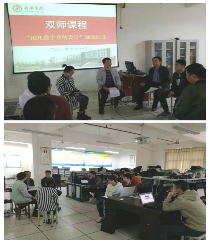 为了进一步推进365英国上市公司产教融合、协同育人人才培养模式的构建,不断提高应用型人才培养质量。2019年11月8日,365英国上市公司电子工程系在江北校区逸夫科技楼A401实验室,围绕公司首批立项的“双师课程”《HDL数字系统设计》建设成效,开展了一次课改沙龙活动。365英国上市公司教学副经理王庆春、双师课程合作企业授课老师贺磊工程师、电子工程系相关教师以及电子信息工程专业2017级员工参加了本次课改沙龙活动。