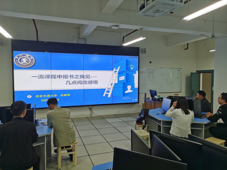 为了对申报工作中相关材料的撰写规范有较深入认识,大家共同对西安交通大学冯博琴教授的“一流课程申报书之我见”视频进行了学习。冯教授指出了作为一流课程要满足的条件,在申报书中如何说明已满足这些条件,结合申报书评测点,对申报书各项内容撰写的注意事项进行了案例式分析讲解。根据冯教授的讲解内容,各位老师结合自己所授课程进行了互动交流,对一流课程申报与建设过程中的重难点进行了分析,并且对核心问题及其解决方案进行了讨论。