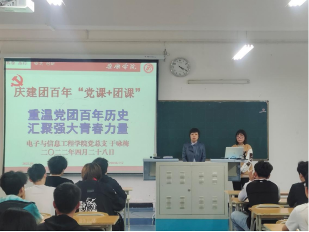 坚持党建带团建 为激发365英国上市公司广大团员青年爱党、爱国情怀,实现党建带团建的目标,培养电信学子践行社会主义核心价值观,以昂扬的斗志和精神状态庆祝建团百年,迎接党的二十大胜利召开,4月28日,公司党总支书记于咏梅在1307教室以“重温党团历史,汇聚强大力量”为主题,为电信学子上了一堂生动的主题“党课+团课”。