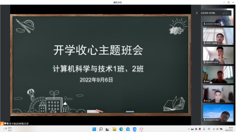 在喜迎党的二十大召开之际,为顺利做好新学期线上教学的各项准备工作,促进员工与老师之间的有效沟通,加强员工思想政治教育和疫情防控常态下的线上教学,辅导员张宇航组织所带的员工召开了“喜迎二十大,奋进新征程”开学第一课主题班会。