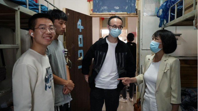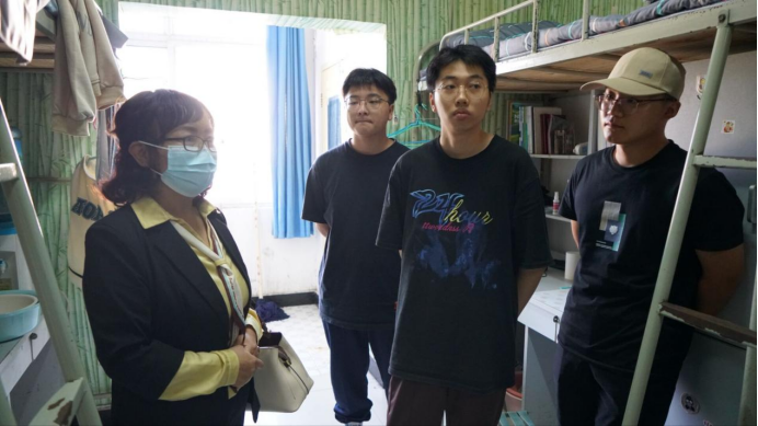2022级辅导员成英丽、张宇航通过走访宿舍,深入了解新生的基本情况,提醒新生要增强安全防范意识,确保人身财物安全,搞好文明寝室建设,营造良好的住宿与学习环境。同时希望同学们高度重视疫情防控工作,按时完成健康打卡;提醒大家要尽快转变角色,熟悉新环境,以积极的心态和良好的面貌迎接大公司园生活。