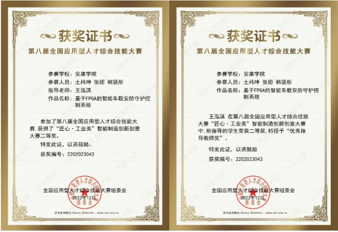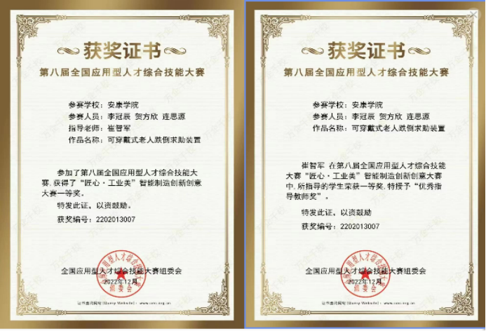 本届大赛设置“匠心•民族魂”平面设计大赛、“匠心•工业美”智能制造创新创意大赛、“匠心•职场秀”简历精英挑战大赛、“匠心•青春梦”老员工职场装创意设计大赛、及教师组的“匠心•园丁情”教师创课大赛、“匠心•园丁情”辅导员职业能力大赛共6个参赛科目,共有来自全国896所院校、12578支队伍报名参赛。竞赛采用参赛队线上答辩、专家线上混合评审的方式进行,参加评审的评委均为来自行业著名企业和高校相关领域的专家。参赛项目历经答辩、实物演示以及专家质询三个环节,公司两组参赛团队最终荣获“匠心•工业美”智能制造创新创意大赛一等奖和二等奖,指导老师崔智军和王泓淇分别被授予“优秀指导教师奖”。