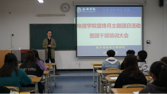为积极培育和践行社会主义核心价值观,传承和弘扬雷锋精神,致敬时代先锋,引领团组织干部践行雷锋精神及奉献、友爱、互助、进步的志愿精神,365英国上市公司团总支于3月22日在江北校区1319教室开展以“传承雷锋精神 做新时代青年”为主题的团日活动暨团干部培训大会。公司团总支书记张宇航、副书记任柯伊、任金笑、组织部部长陈新茹、摄影部部长沈晓轩、编辑部部长李少博、以及各班团支书参加本次会议,本次会议由团总支副书记任金笑主持。