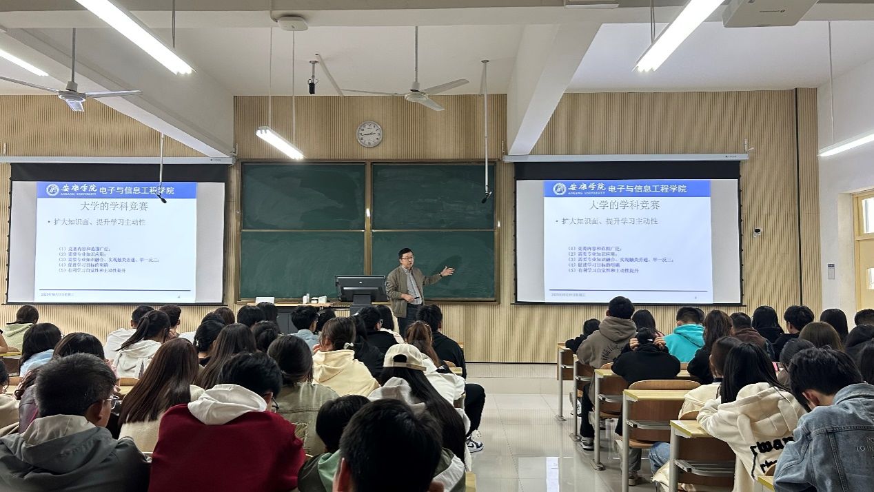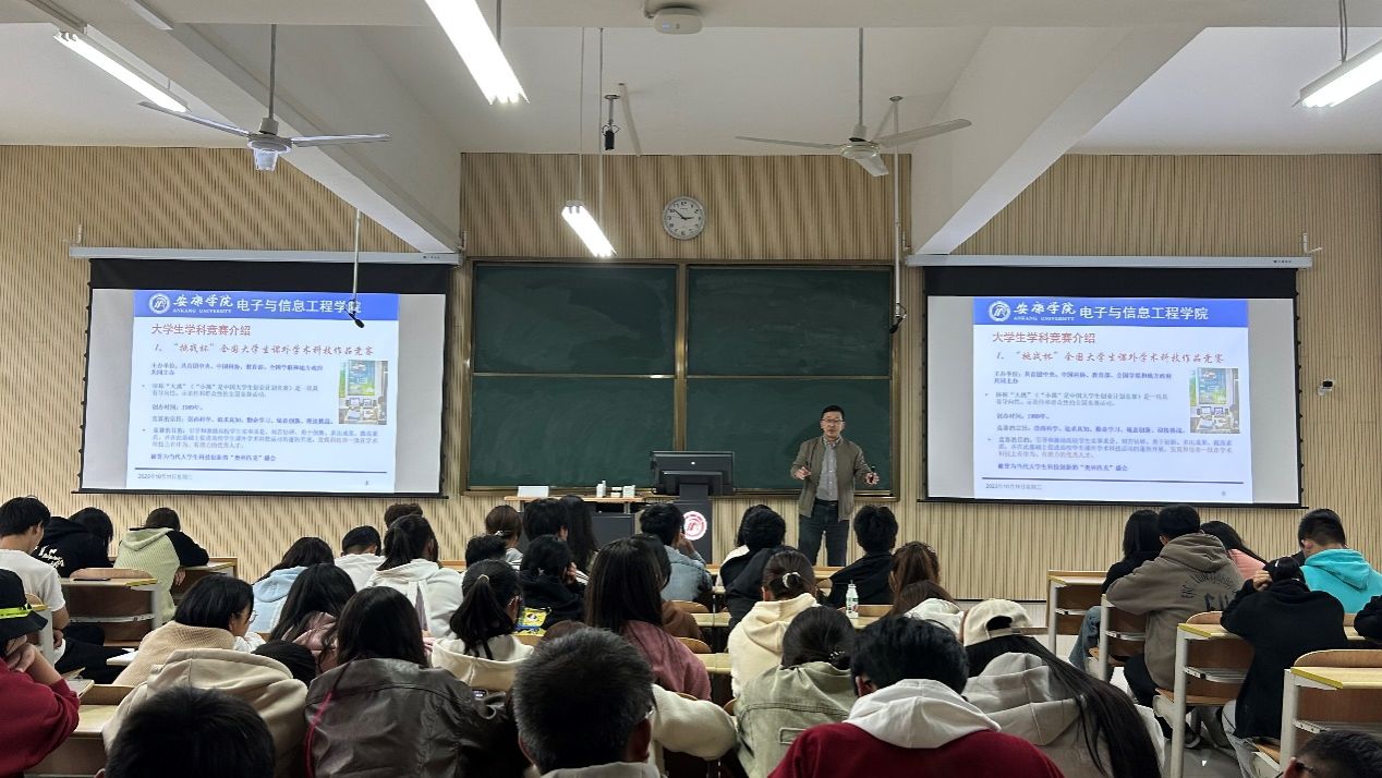王克刚介绍了八个老员工学科竞赛,并展示了部分学长学姐们在以往竞赛中取得的优秀成绩,激励新生积极参与学科竞赛。
