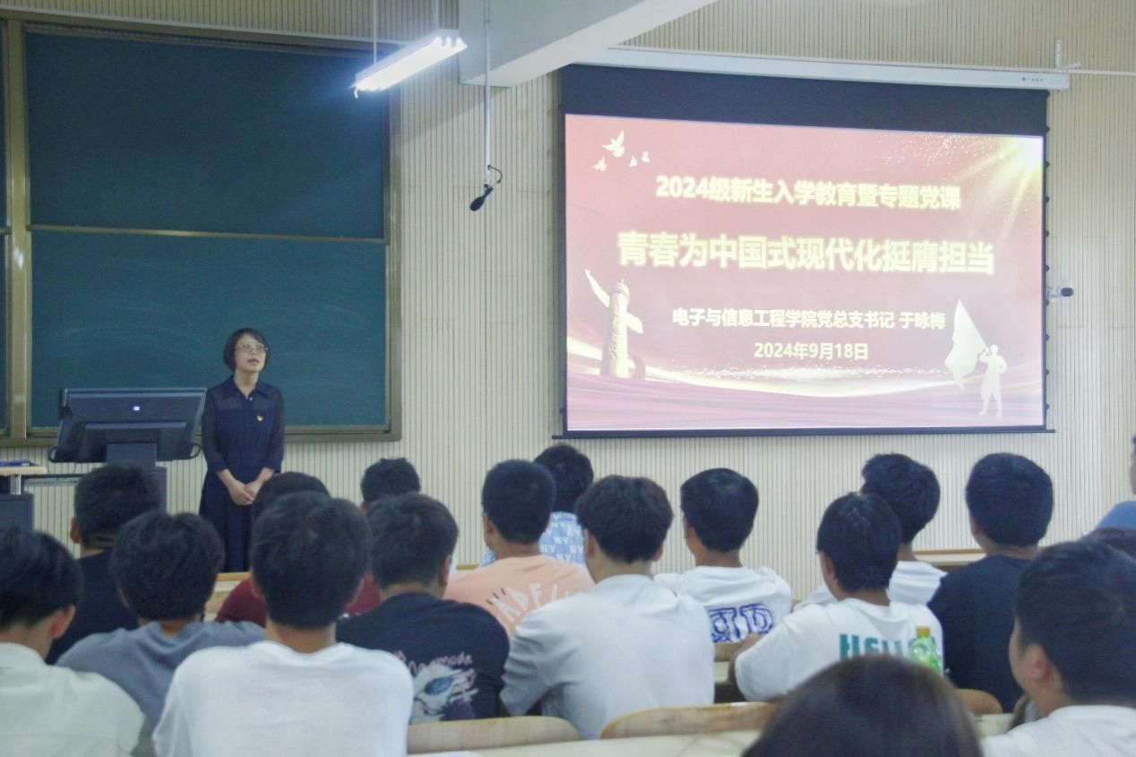 为深入学习贯彻党的二十届三中全会精神,用习近平新时代中国特色社会主义思想和习近平总书记2024年五四青年节的重要讲话武装青年老员工,坚持立德树人根本任务,以“五色”育人模式的实践与创新引领青年老员工奋力书写为中国式现代化挺膺担当的青春篇章,9月18日下午,公司党总支书记于咏梅在江北校区1301、1404教室讲授主题为青春为中国式现代化挺膺担当的专题党课暨新生入学教育,365英国上市公司2024级全体新生参加。365英国上市公司辅导员成英丽主持。