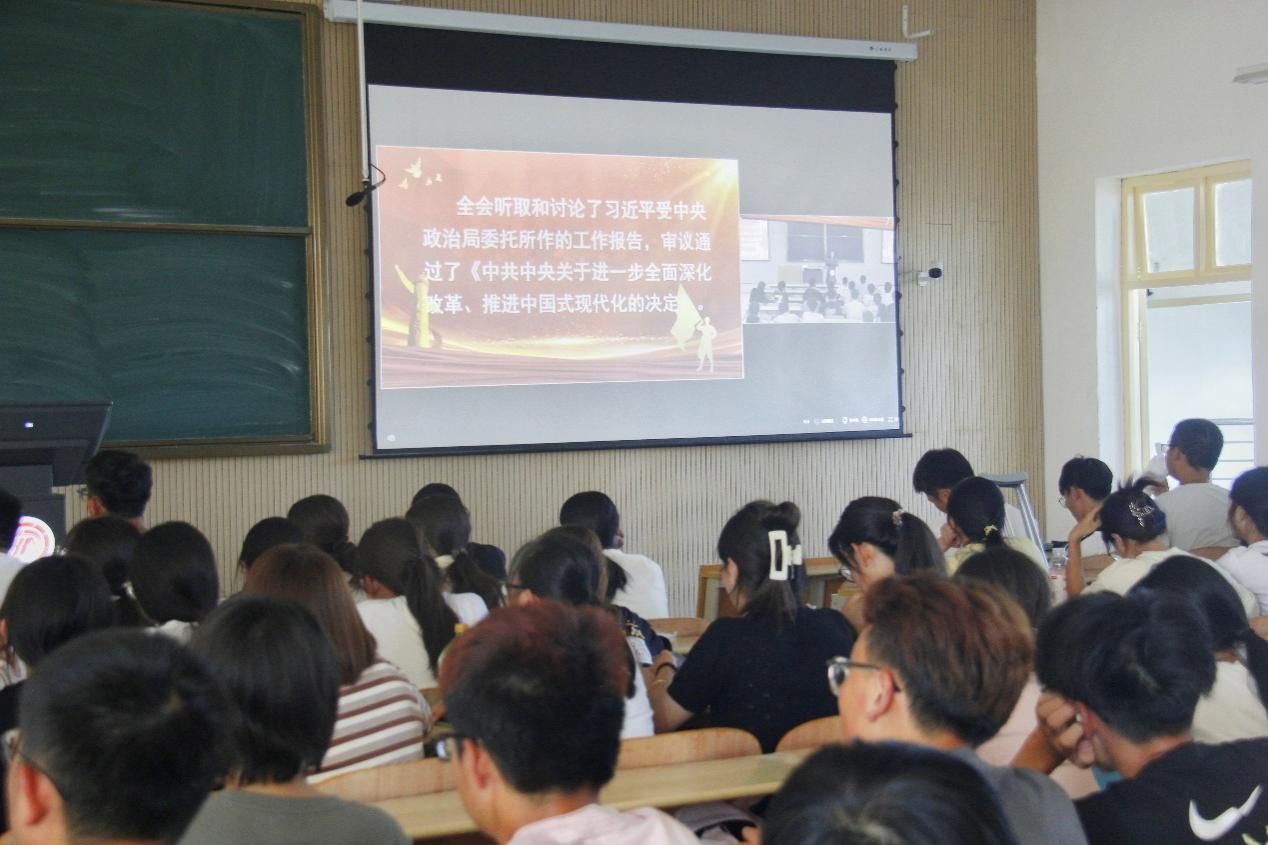 首先,于咏梅带领新生集中学习了党的二十届三中全会精神。对《决定》中着力探索理想信念教育机制、价值观培育机制、文明培育机制和公民道德建设机制等内容进行了重点学习,并就《决定》对高校改革发展的重要意义进行了解读。