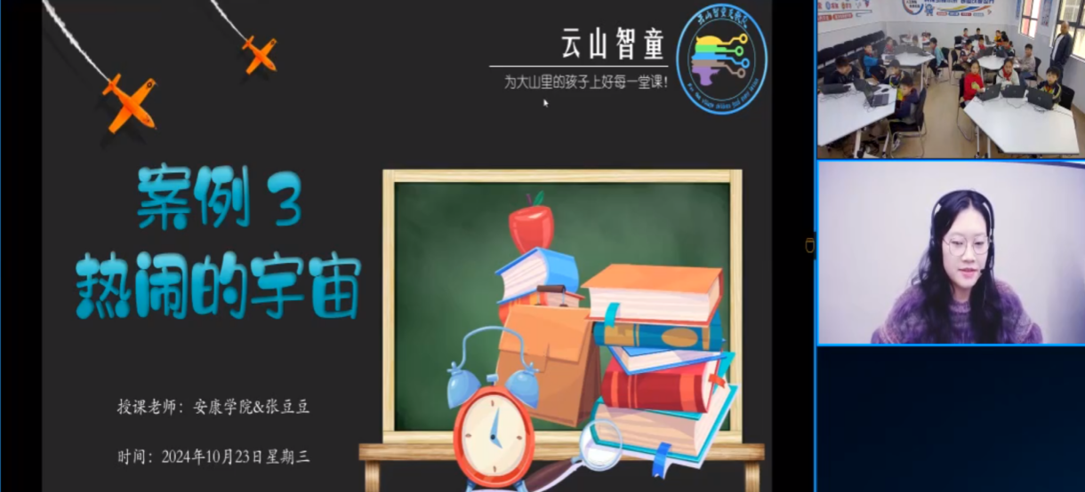 “云山智童”支教队的队员通过线上教学平台,与白河县茅坪小学和宋家镇小学建立起了长期稳定的支教合作关系。每周固定的支教课程时间,成为了山区孩子们与前沿编程知识亲密接触的宝贵时刻。支教队员们精心设计课程,从基础的编程概念引入,到利用少儿编程软件开展趣味盎然的编程实践案例,如指导孩子们运用积木块在源码编辑器中绘制多彩图案、制作小游戏等,充分激发孩子们对编程世界的好奇心与探索欲。