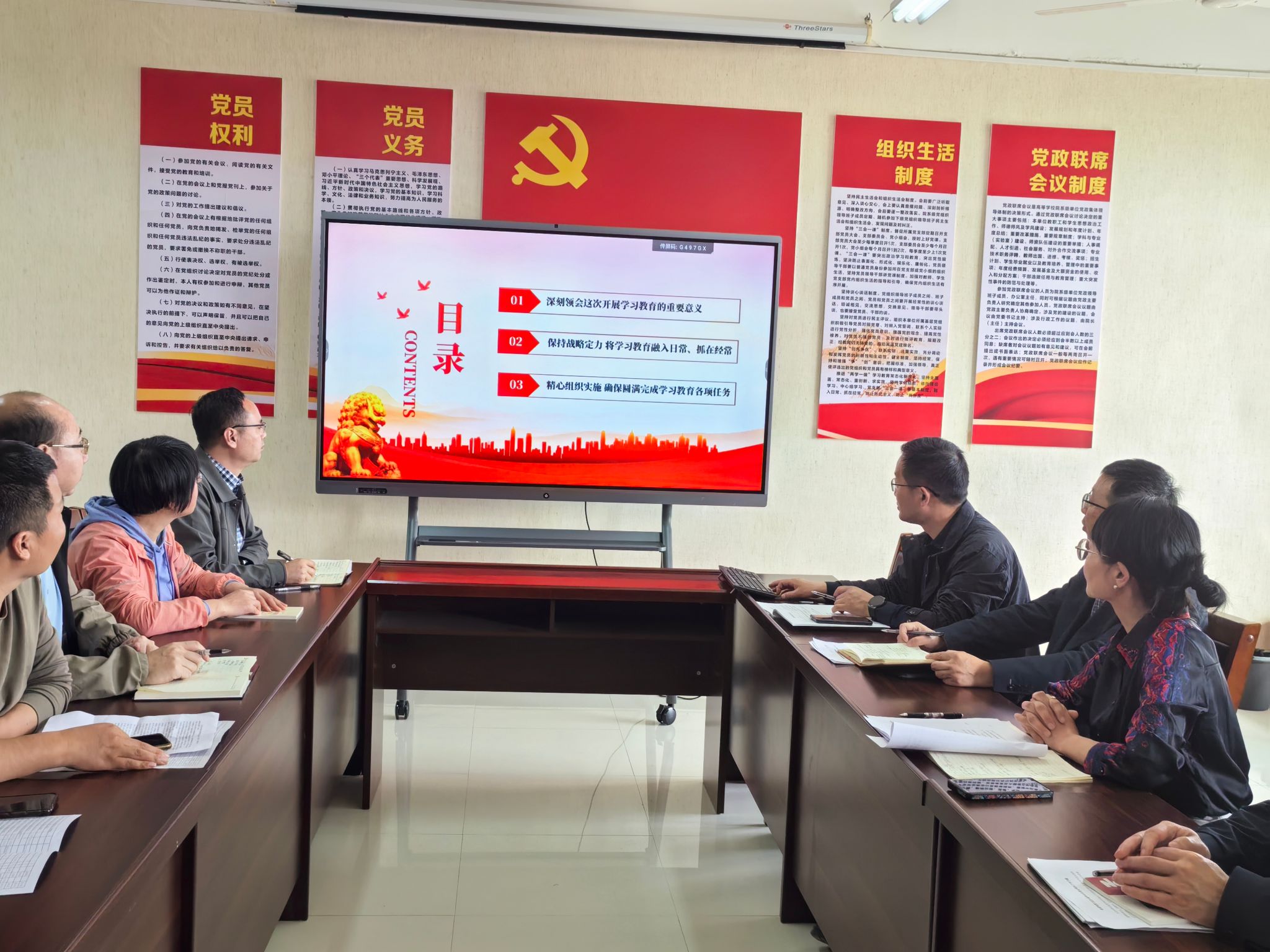 学习会上,中心组成员集体观看了电视专题片《反腐为了人民》第一集 惩治蝇贪蚁腐。