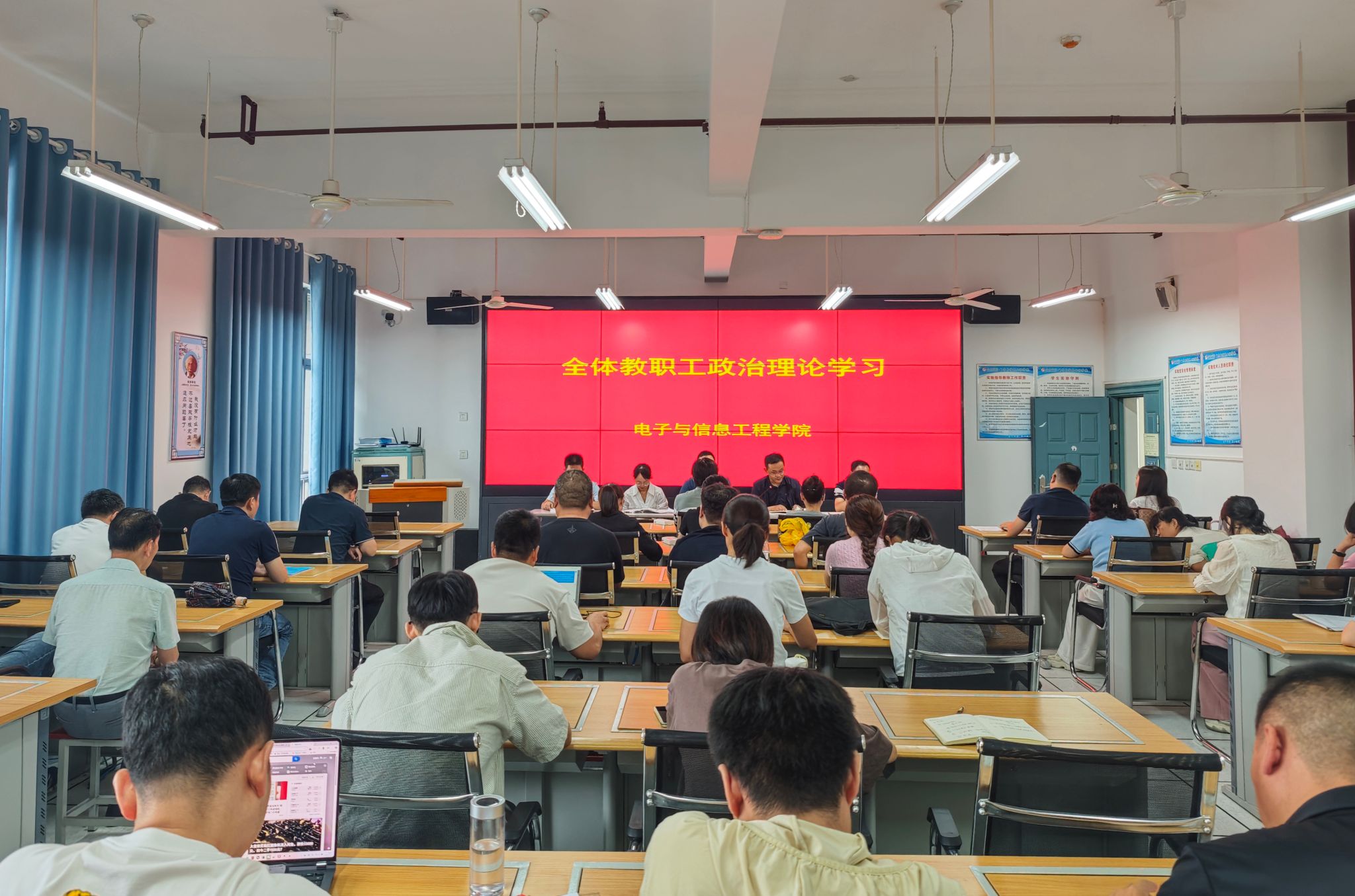 全体教职工集体学习了习近平总书记在纪念中国人民抗日战争暨世界反法西斯战争胜利80周年大会上的重要讲话精神、习近平总书记重要文章《弘扬伟大抗战精神,向着中华民族伟大复兴的光辉彼岸奋勇前进》、习近平总书记关于深入贯彻中央八项规定精神学习教育的重要指示精神等重点学习内容。