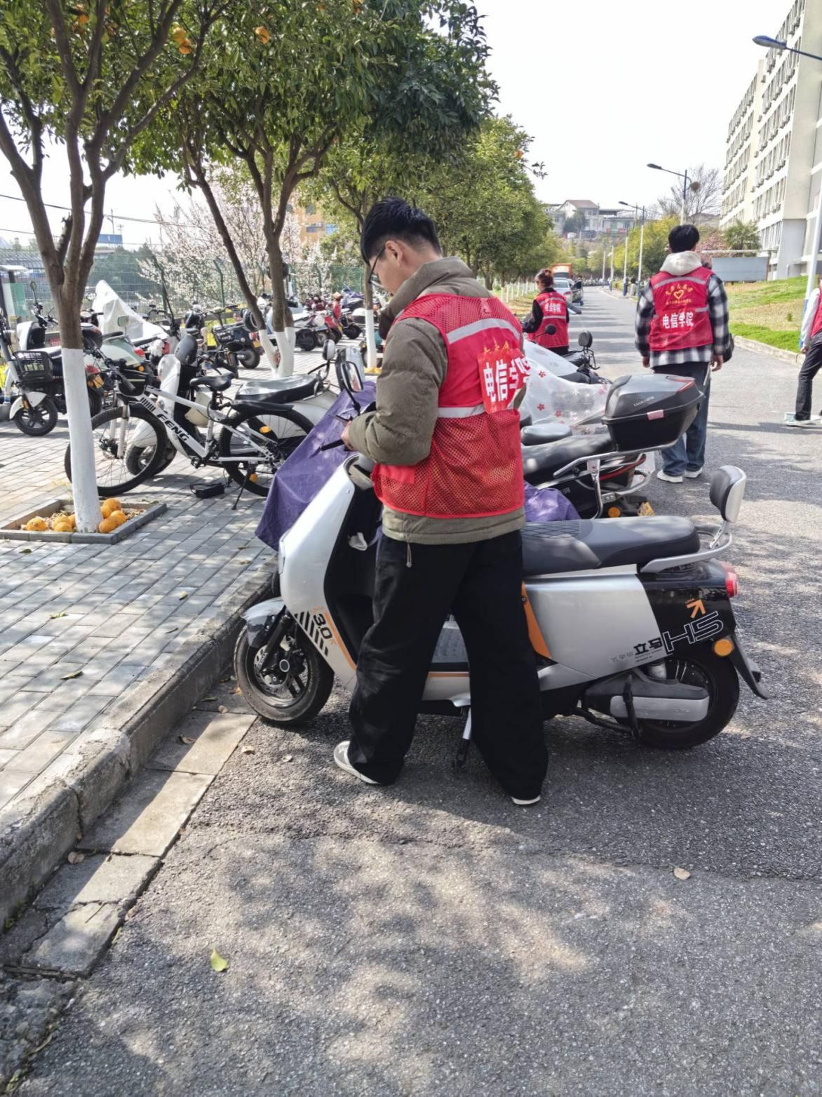 活动过程中,志愿者们既是校园停车秩序的维护者,更是校园文明的传播者。他们用暖心行动与认真态度感染着身边的每一位师生,不少同学看到志愿者的辛勤付出后,主动将自己的电动车重新规范停放,还有同学自发加入劝导队伍,携手维护校园秩序。经过此次集中整治,校园内电动车停放秩序得到明显改善,原本杂乱的停车区域变得整齐有序,校园整体环境也更显清爽整洁。