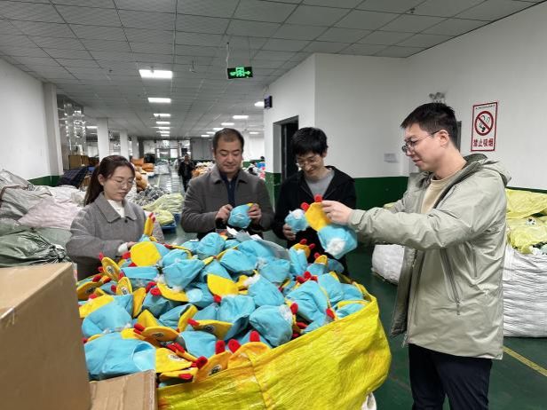 座谈会后,公司相关负责人陪同企业一行,实地走访了安康安贝斯玩具、陕西康之宁玩具、安康安瑞智能制造有限公司、安康中国西北纺织服装产业城等多家毛绒玩具与纺织行业的重点企业,并拜访了汉滨区智能织袜机产业链专家工作站技术团队。调研团队深入生产车间、研发中心,了解毛绒玩具和服装全流程生产工艺、企业规模及发展布局。调研过程中,校企双方结合电子控制、人工智能等专业优势,就企业智能化改造、产品质量检测等技术问题与企业深入探讨,为企业提供优化建议。