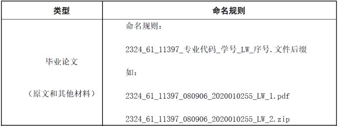 4.各系将最终验收合格的全套毕业论文(设计)材料电子版按照《关于进一步加强毕业论文(设计)质量管理的通知》中要求进行命名保存的同时,请按照以下命名规则另存一套电子版材料,为国家抽检做好准备。命名格式如下: