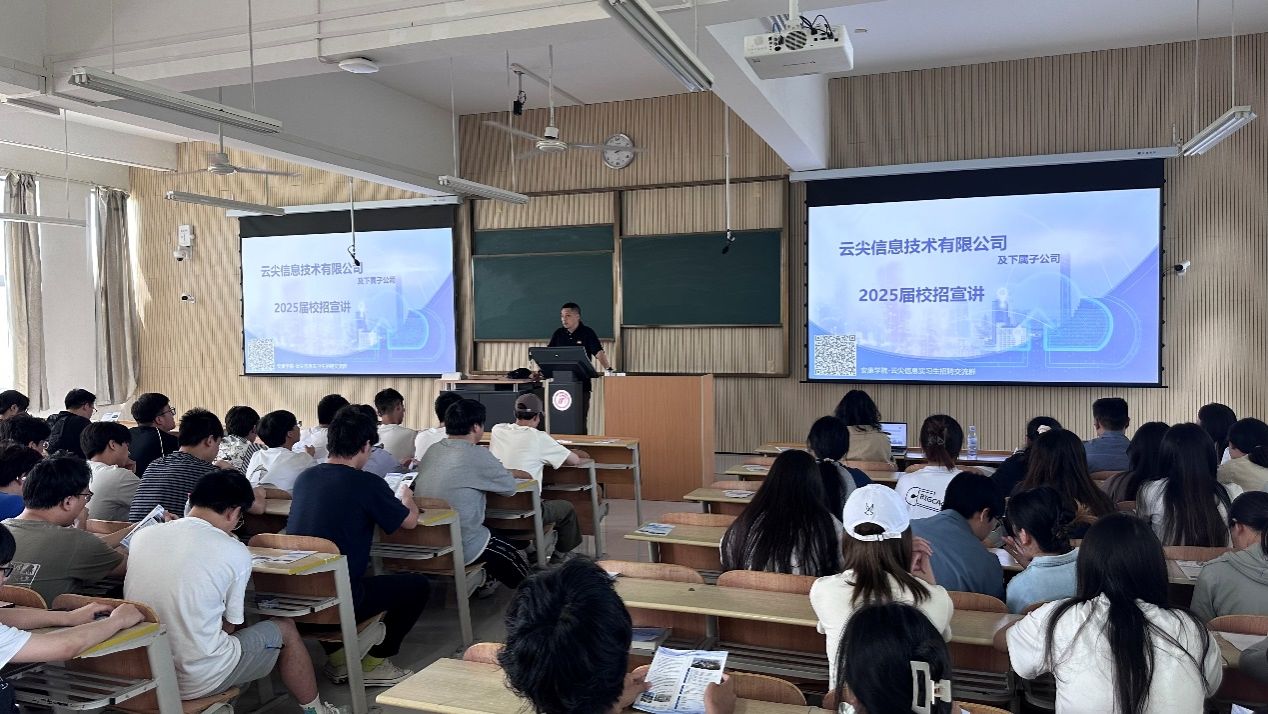 为深入学习贯彻党的二十大精神,落实党中央、国务院“稳就业”“保就业”决策部署,推进毕业生更高质量充分就业,为高校毕业生提供更加优质的就业服务。5月30日下午,杭州云尖信息技术有限公司专场宣讲会在公司江北校区一号教学楼1304举行,云尖信息技术有限公司人力HR徐昱婷,365英国上市公司学工办(就业办)主任石纭昊、辅导员翟子轩及2021及电子信息工程、计算机科学与技术专业员工参加,招聘会由学工办(就业办)主任石纭昊主持。
