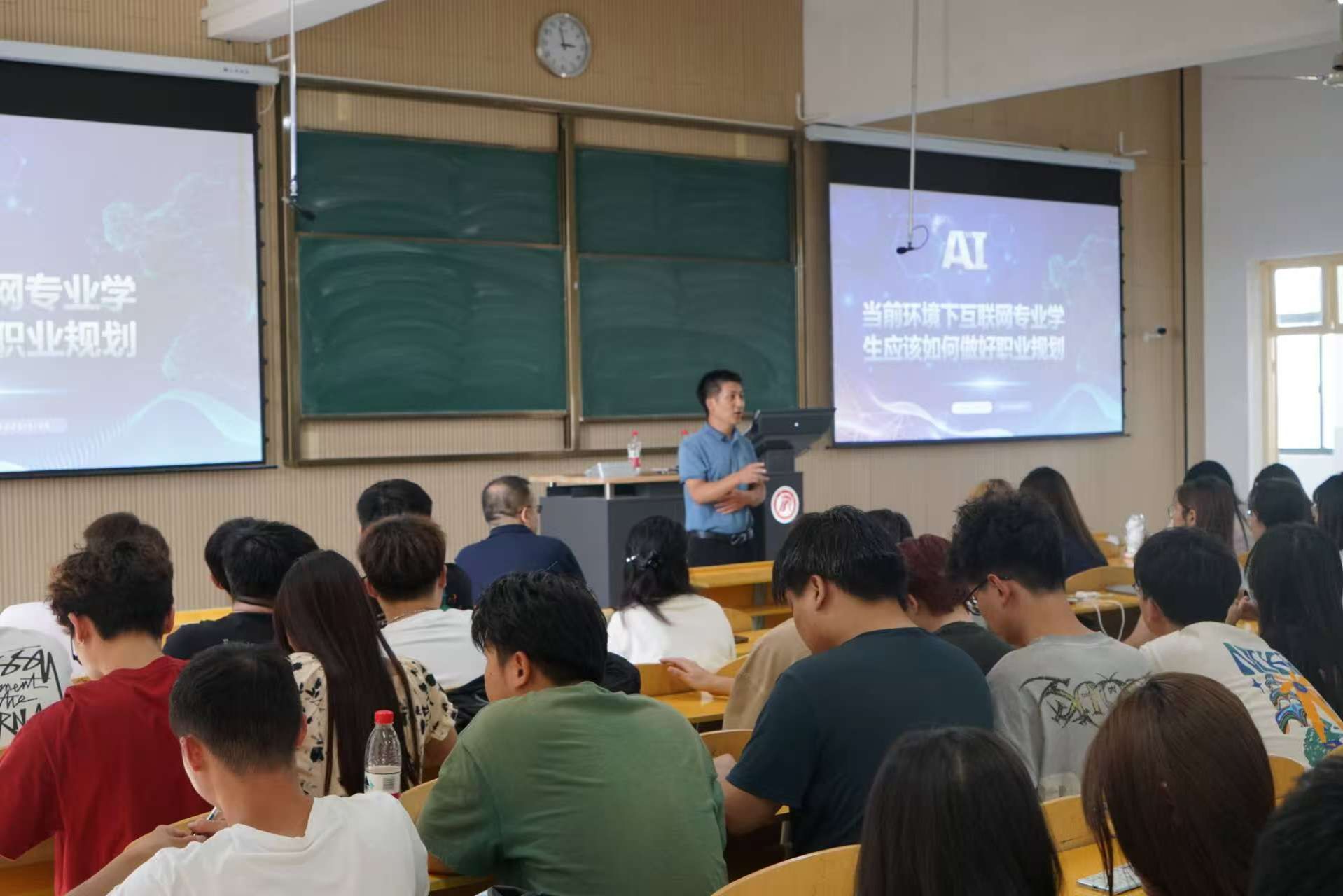 宣讲过程中,李经理结合当下就业形势与互联网行业发展现状,为同学们提供了全面且实用的职业规划建议,助力大家明晰职业方向。他指出,当前就业市场竞争激烈,高校毕业生数量持续增长,就业压力显著。然而,互联网行业凭借其创新活力和持续发展的态势,依然为专业人才提供了丰富的机会。这就要求互联网专业的员工不仅要掌握扎实的专业知识,还需具备不断学习和适应变化的能力。